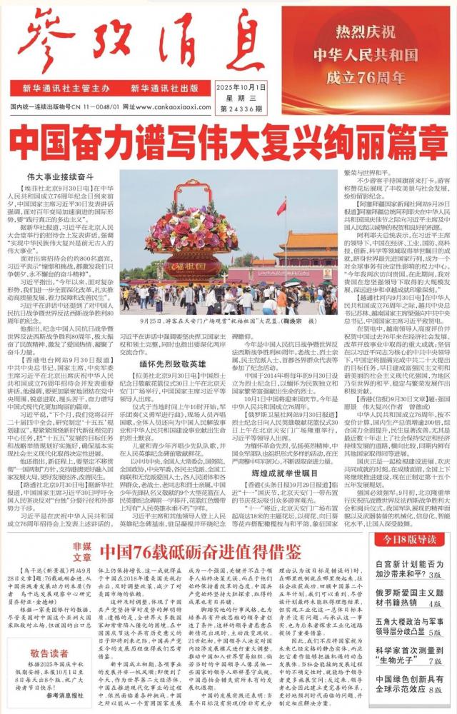 今日出版的《参考消息》数字报,五大看点不容错过。