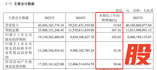 细究利润结构,会发现这份“炸裂”的业绩背后存在一定的特殊性。公司扣除非经常性损益后的净利润为132.41亿元,同比增长32.56%,虽然增速依然可观,但远不及归母净利润翻倍的幅度。